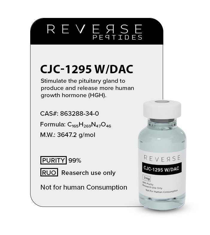 CJC-1295 W/DAC is a synthetic peptide that stimulates the release of growth hormone by acting as a Growth Hormone Releasing Hormone (GHRH) analog. It is studied for its potential to increase muscle mass, enhance recovery, improve sleep, and support fat loss through sustained growth hormone elevation.