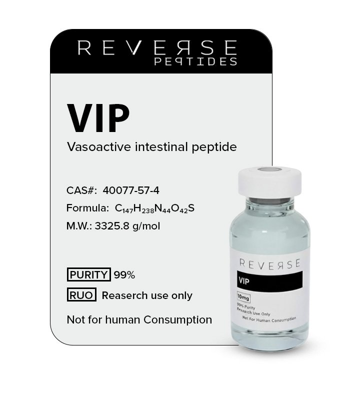 VIP is a 28-amino-acid neuropeptide widely distributed in the gut, pancreas, and central nervous system. It acts via VPAC receptors to induce vasodilation, modulate smooth-muscle relaxation, stimulate glycogenolysis, and regulate immune responses. In research, VIP is used to study cardiovascular regulation, neuroprotection, metabolic signaling, and gastrointestinal secretion.